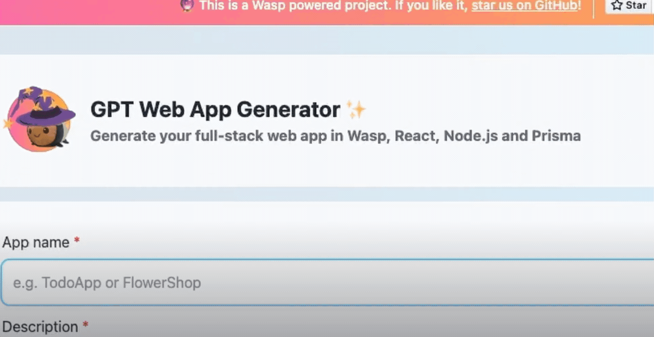 Wasp AI allows you to create a new Wasp app from only a title and a short description (using GPT in the background)!